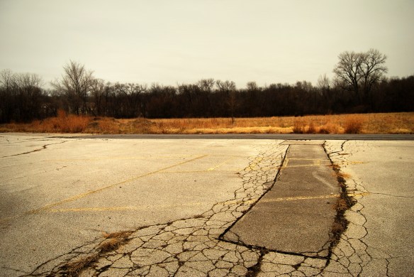 On my last visit—back in October—I noticed somebody had tried to move it again, and the red PVC wire had completely snapped. The chunk of curbing and the red PVC wire were no longer connected. I fully expected the next I visited the lot, the wind would have swept the PVC wire away. The conversation seemed to be over.