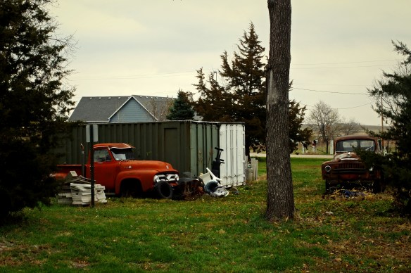 It’s the same with old farm vehicles. What do you do with an old 1955 Ford pick-up? You park it out back near the even older 1950 International Harvester pick-up. I was really drawn to that old Ford. It must have been at least partially restored at some point in the last couple of decades, then put back out to pasture. It’s actually a very cool looking machine, and whoever chose that color to restore the truck had some taste.