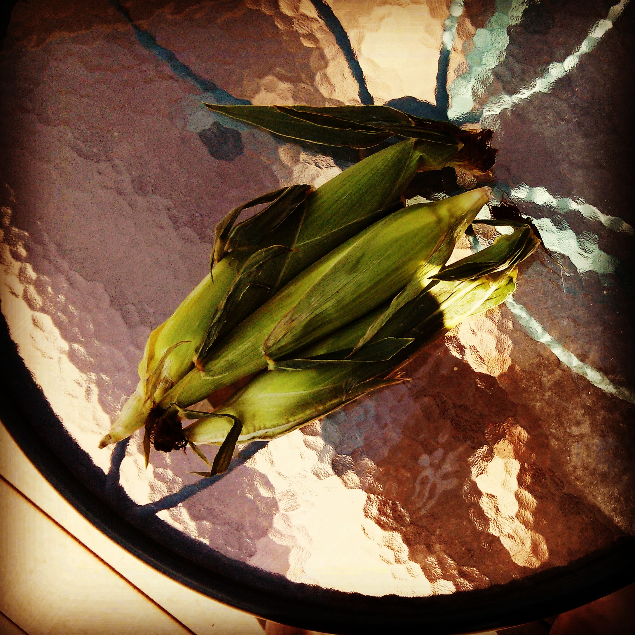 three ears of corn on a table Published May 22, 2014 at 2176 × 2176 in things on a table — knuckles dobrovic 22 July, 2013