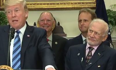 buzz-aldrin-trump-400×240 Published July 4, 2017 at 400 × 240 in two presidents, two speeches, one astronaut “Our journey into space will not only make us stronger and more prosperous, but will unite us behind grand ambitions and bring us all closer together. Wouldn’t that be nice? Can you believe that space is going to do that?”