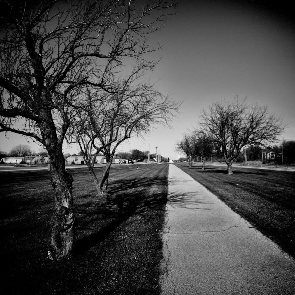 It’s also why I tend to hobble a tad when I begin a walk and hobble a tad more at the very end of a walk. The middle bits, though, are usually pretty enjoyable. Yesterday’s walk home took me through a sort of semi-rural area, into a semi-industrial area, and eventually into a suburb with a wee little park. By the time I left the park — still maybe half a mile from home — my knee was moderately painful. But at least it didn’t seem so cold.