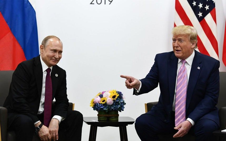 trumpputing20 Published June 28, 2019 at 858 × 536 in trump at the g20 Comrade Trump joking with Vlad Putin about election interference.