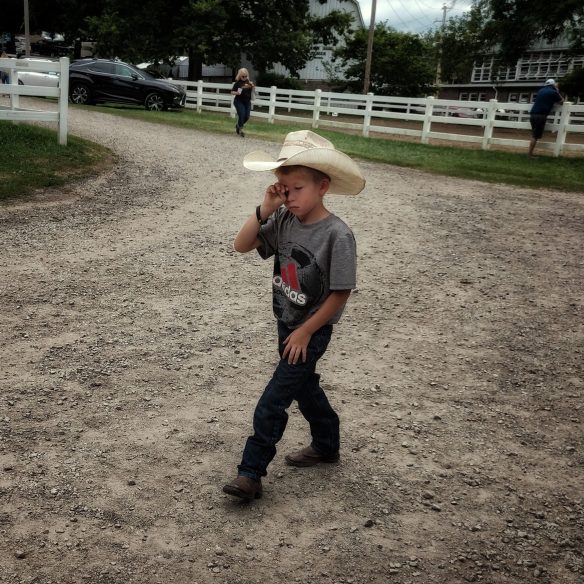 Except at the fair. I will occasionally shoot a photo of a kid engaged in some farm/fair related activity. Like blow-drying a sheep. I’m not photographing the kid, you understand. I’m photographing the activity. But sometimes there are moments when a kid is being so perfectly a kid that you have to make an exception. So I photographed a kid. I am NOT going to feel guilty about it.