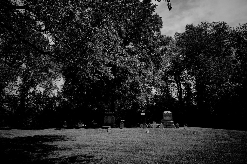 All cemeteries and graveyards tend to be quiet. Pioneer cemeteries are more than quiet. They’re silent. And yet they’re full of stories. Untold stories. Forgotten stories. The first person buried in what would eventually become the Slaughter pioneer cemetery was eight-year-old Hester Slaughter, who died of ‘the fever’ in the summer of 1846. She was buried in a corner of the family farm. There was no lumber mill in the region, so there was no sawn lumber to make a casket. Instead, the family split the trunk of a tree that had been chopped down to clear the land; they hollowed it out, placed poor Hester inside, closed it back up, and buried her. A total of 69 people would be buried in that small plot of land, including three Civil War veterans and a veteran of the War of 1812.