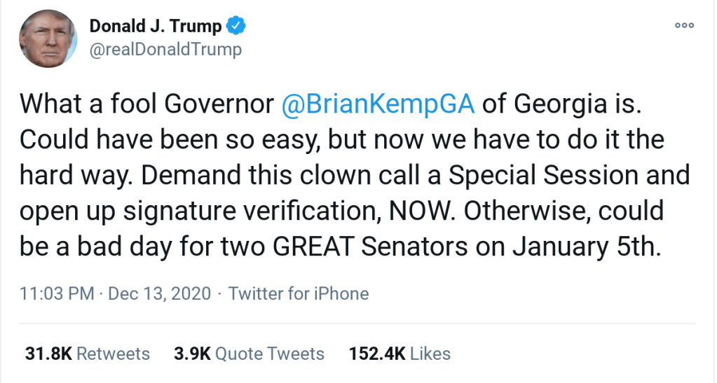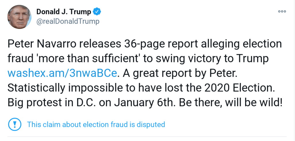 Lots of stuff taking place on the 6th. It’s also the day when both houses of Congress will meet to officially record the electoral college vote, which was taken on Dec. 14 to confirm the results of the 2020 election on November 3rd (SPOILER: Uncle Joe Biden won 306 votes to Comrade Trump’s 232 votes). Normally — as if ‘normal’ still had any meaning — that vote would be just a formality.