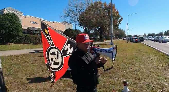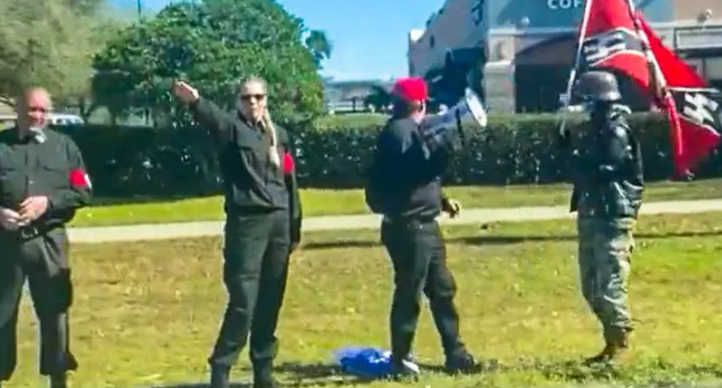 Saturday, a couple dozen Nazis did just that in Orlando, Florida. Gathered, wore swastikas, waved flags, shouted ugly, despicable, hateful things.
