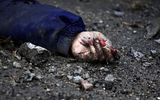 In Bucha it was personal. Individual civilians deliberately murdered by individual Russians. Civilians with their hands tied behind their backs, executed in the street. Random civilians riding their bikes, murdered for no reason other than a desire to kill somebody. Men and women shot while sitting in their cars. At least 40 bodies of civilians were scattered along the street. Reports of nearly 300 buried–or partially buried–in two mass graves.