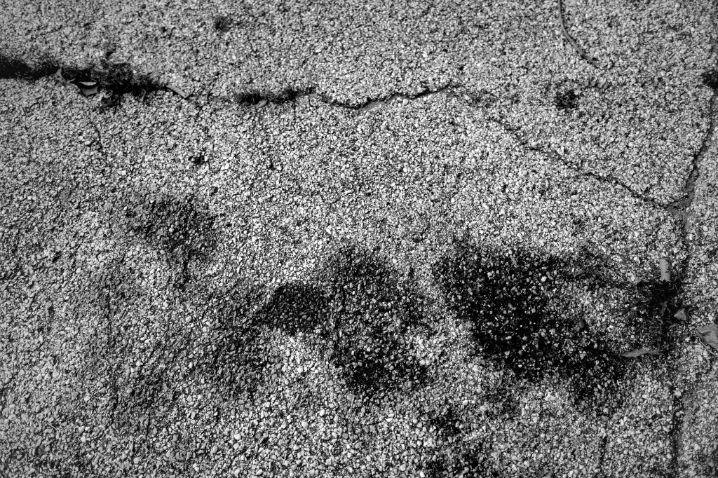A couple of days ago I wrote about a photograph I’d taken of some cracks and oil stains in a random patch of blacktop. It may seem a wee bit weird to photograph a patch of blacktop, but…well, just wait. In that post, I briefly referred to the fact that there’s a difference between blacktop and asphalt. That sparked a reply to the post, and that reply reminded me of an earlier crushed stone and bitumen-related photograph I’d taken fifteen years ago.