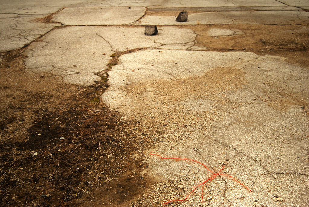 I returned to visit the chunk of curbing about a month later and was shocked to see it had been moved. Somebody had apparently picked it up, carried it about twenty-five feet, at which point the red PVC wire had snapped.