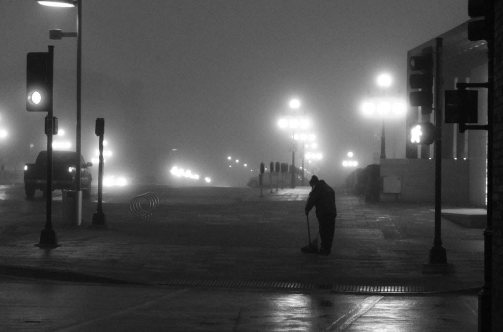 And he did just that. He climbed up on the containment wall, laid his head on his arm, and closed his eyes. I don’t know if he went to sleep or if he just passed out. I stood there for a very long moment, uncomfortable about leaving him and equally uncomfortable about staying with him. The look of misery and exhaustion never left his face. But there was something almost delicate about his relaxed hands.